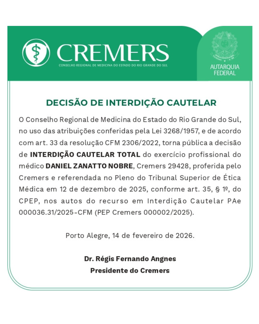 Subscription to Conselho Regional de Medicina do Estado do Rio Grande do Sul comes without risk as you can unsubscribe instantly at any time.