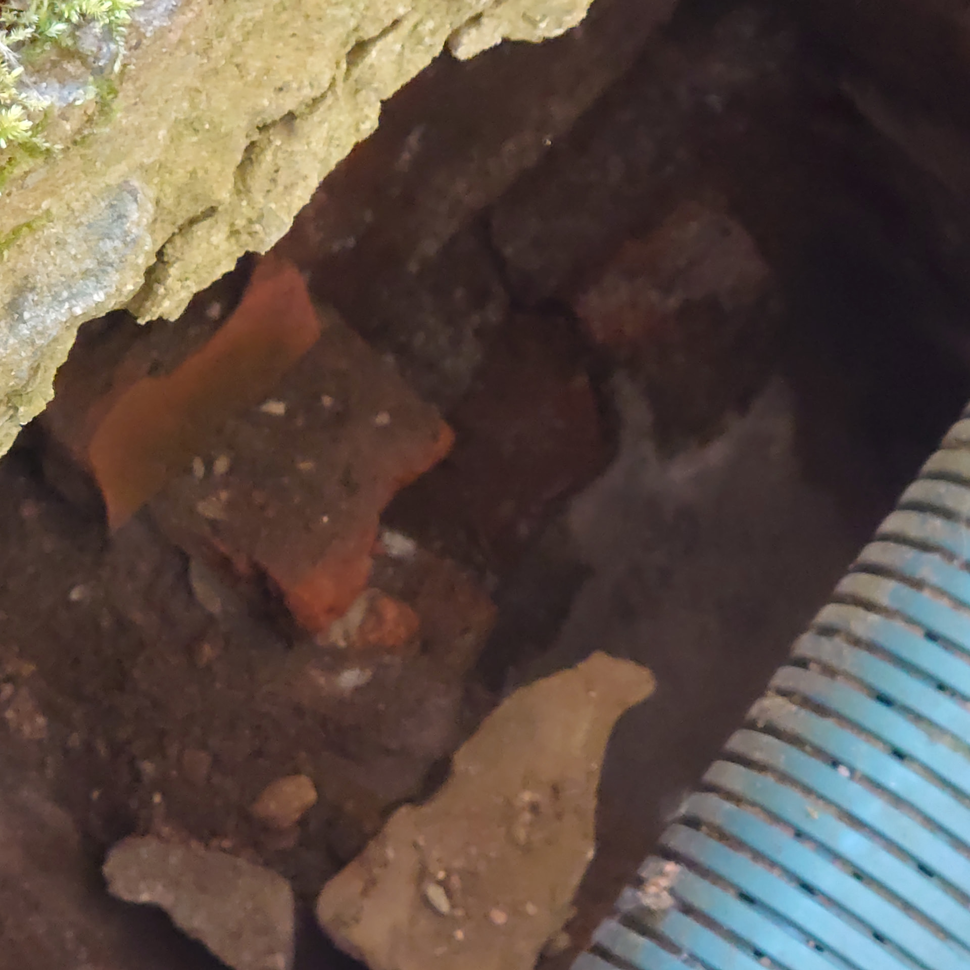 Darum geht es ja, den Schacht (er endet dort wo das Wasser austritt) von außen dicht zu bekommen.